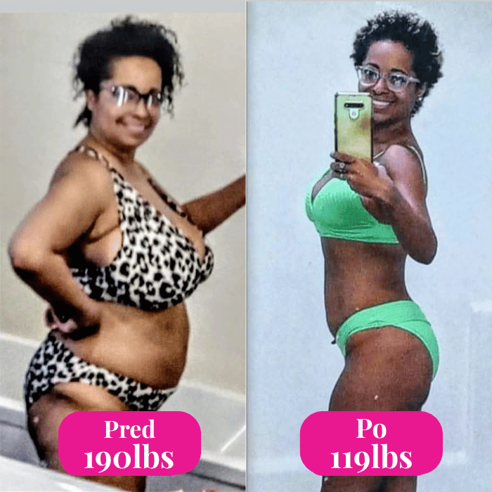 Začínala som na 200 librách a teraz mám 129 — takúto váhu som nemala od strednej školy.